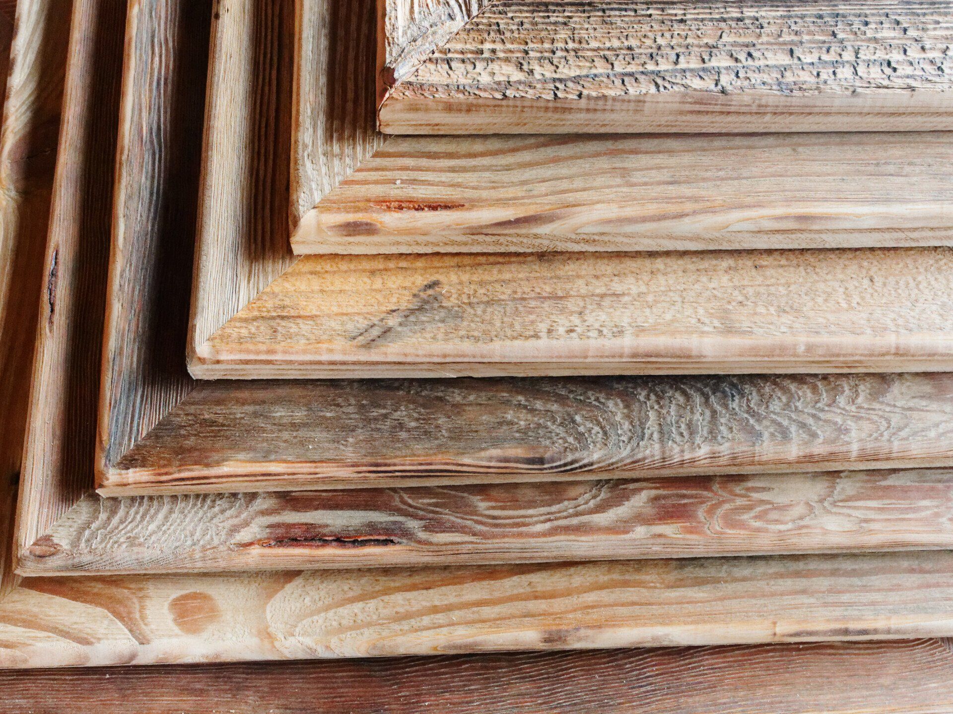 Das "sonnenverbrannte" Holz stammt von zurückgebauten uralten Berghütten, Heustadeln und Scheunen aus Bayern und wird durch mühevolle Aufbereitung zu neuem Leben erweckt